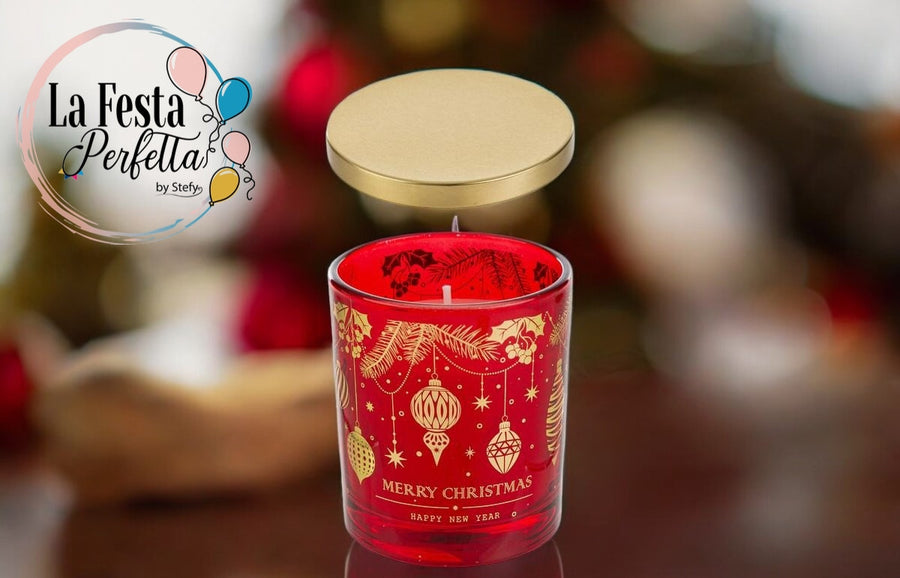 BARATTOLINO CANDELA PROFUMATA VETRO ROSSO d.7Xh.8CM