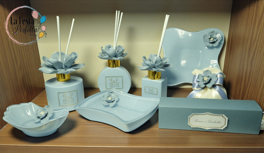 Bomboniera lampada LED con fiore in ceramica Capodimonte Firmata Poemia