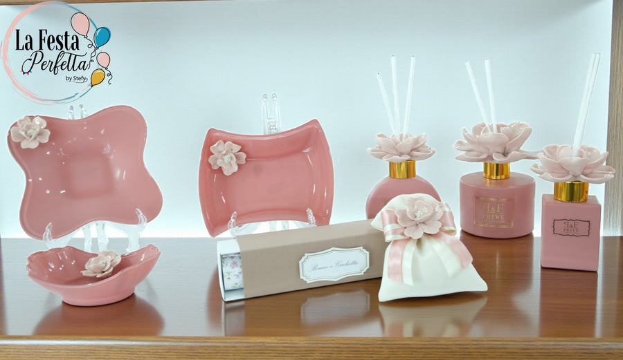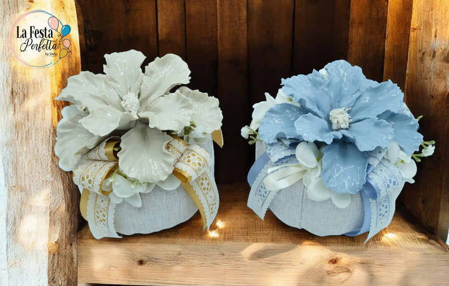 Bomboniera Cuscino Bon Bon Con Fiore in ceramica in Capodimonte