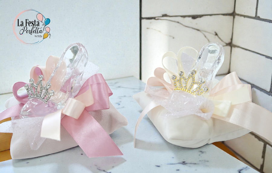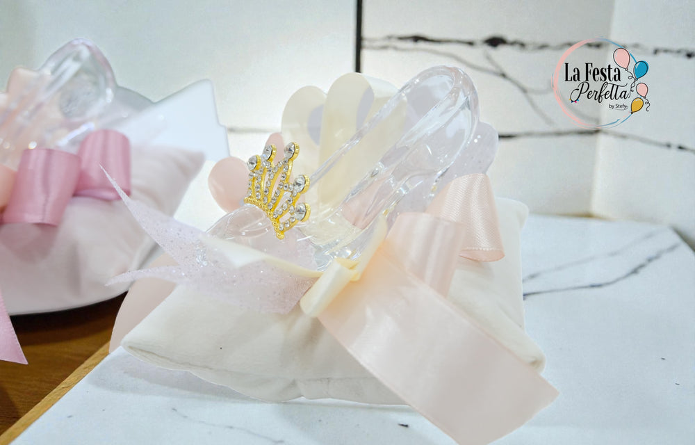 Bomboniera scarpetta in cristallo con cuscino e corona