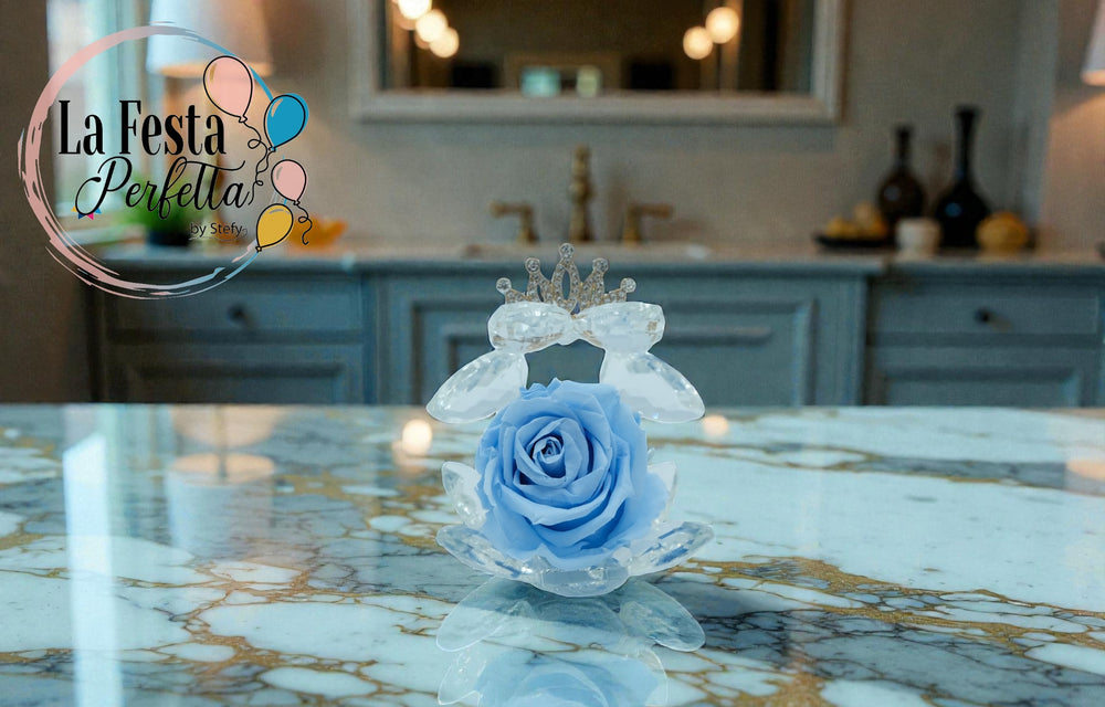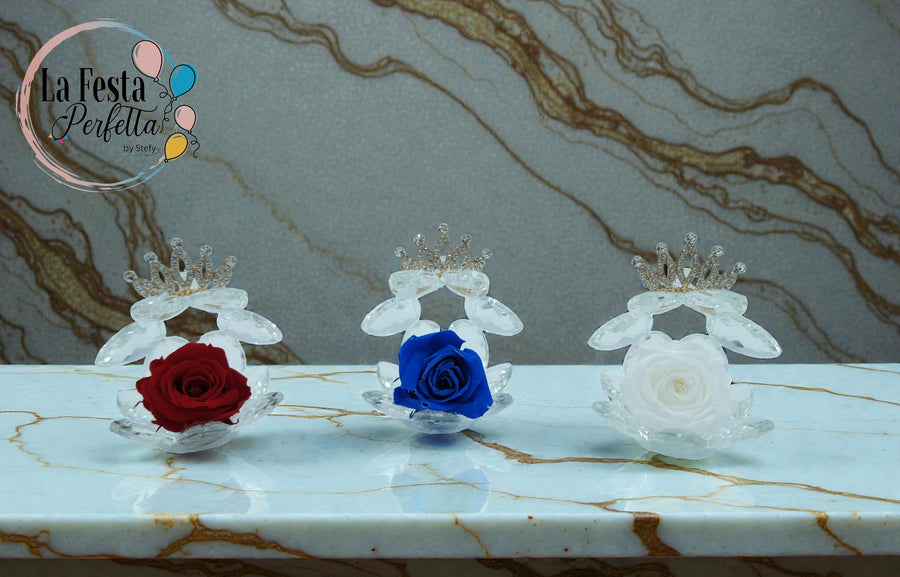 Bomboniera Rosa Stabilizzata con Corona in Cristallo