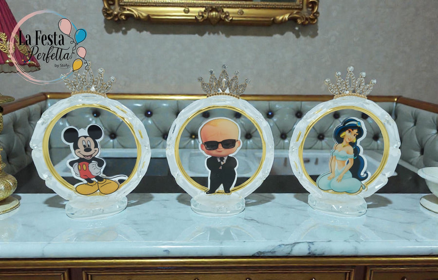 Bomboniera Cerchio con Corona e Personaggio a scelta in Cristallo