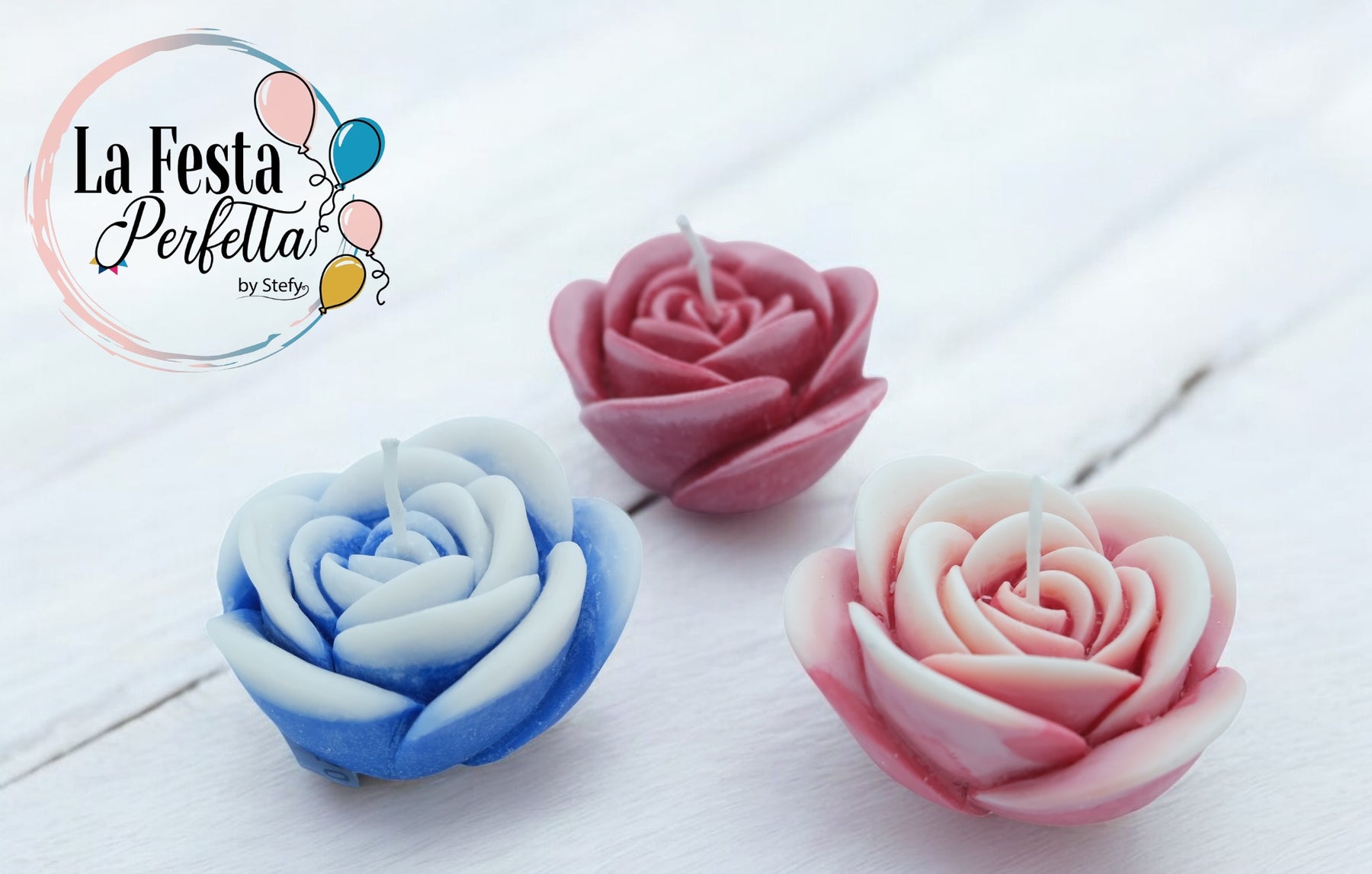 • Rosa Candela Cera di Soia Profumata