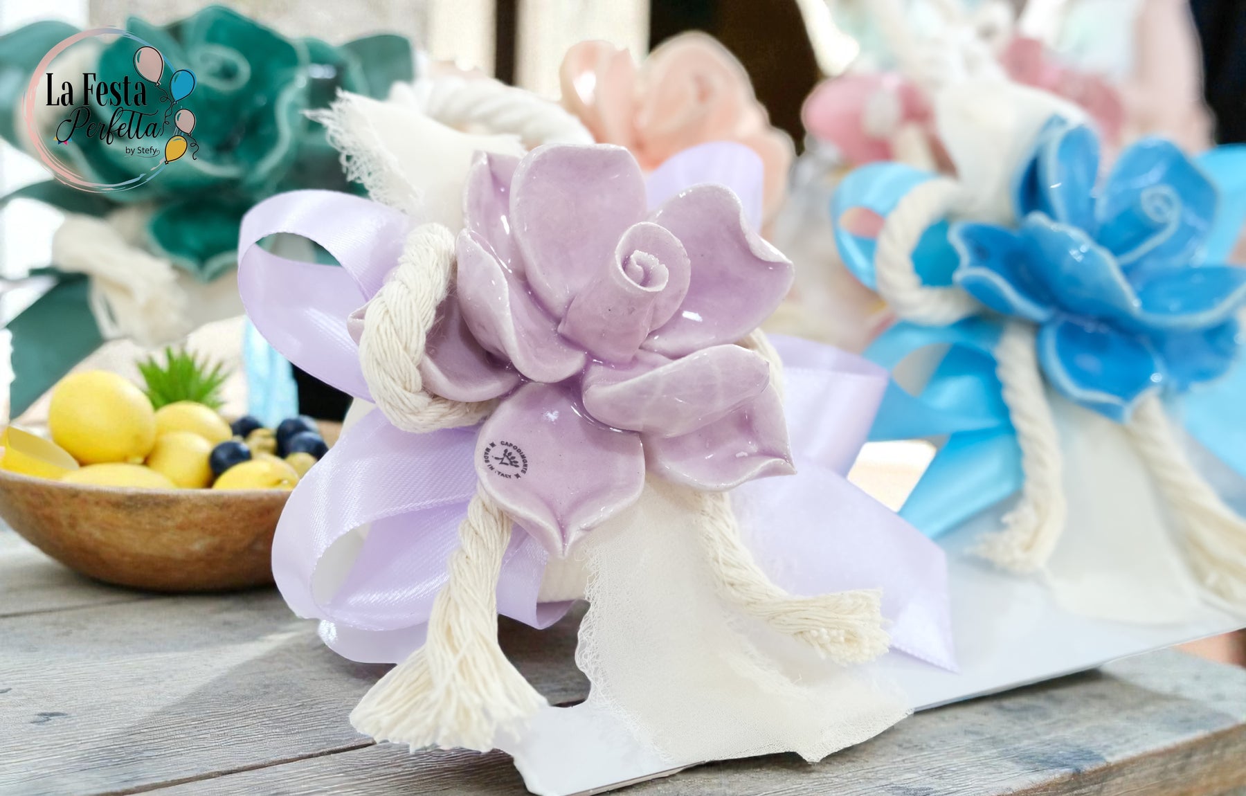 - Bomboniera saponetta con fiore realizzato a mano in ceramica Capodimonte