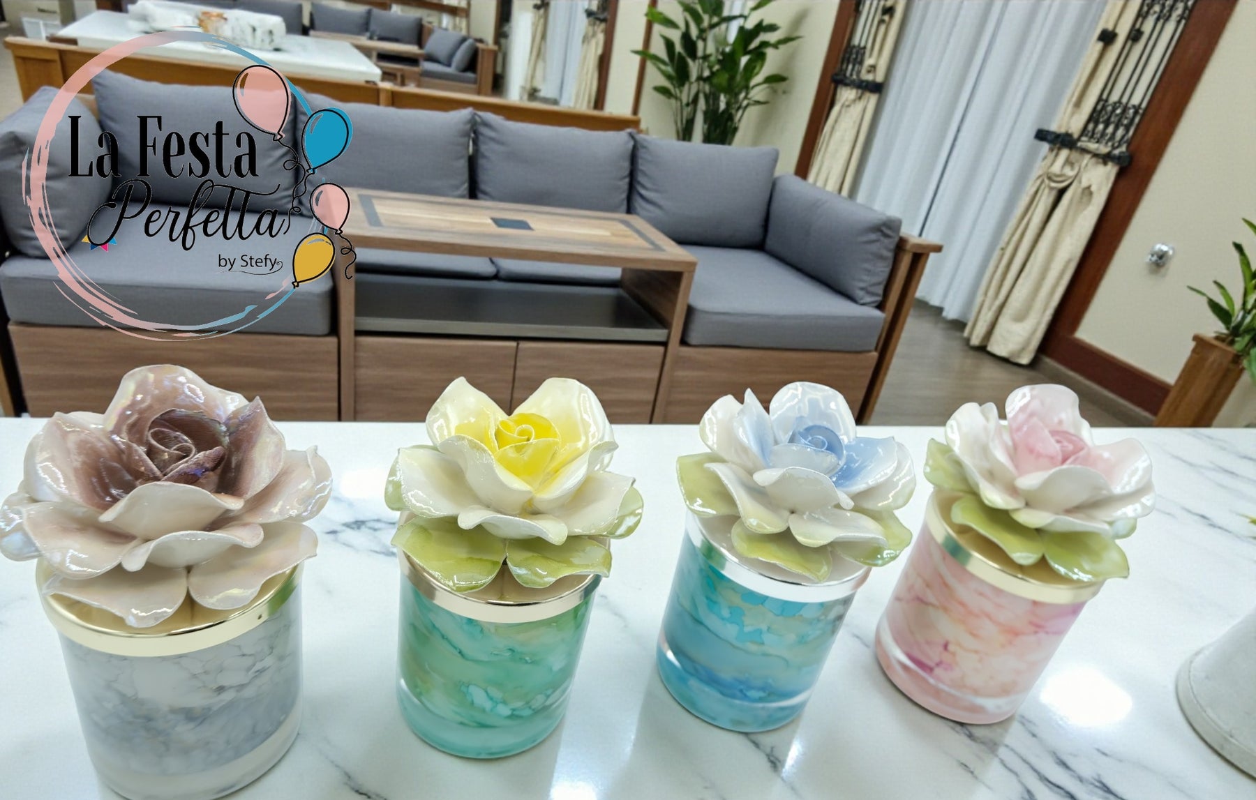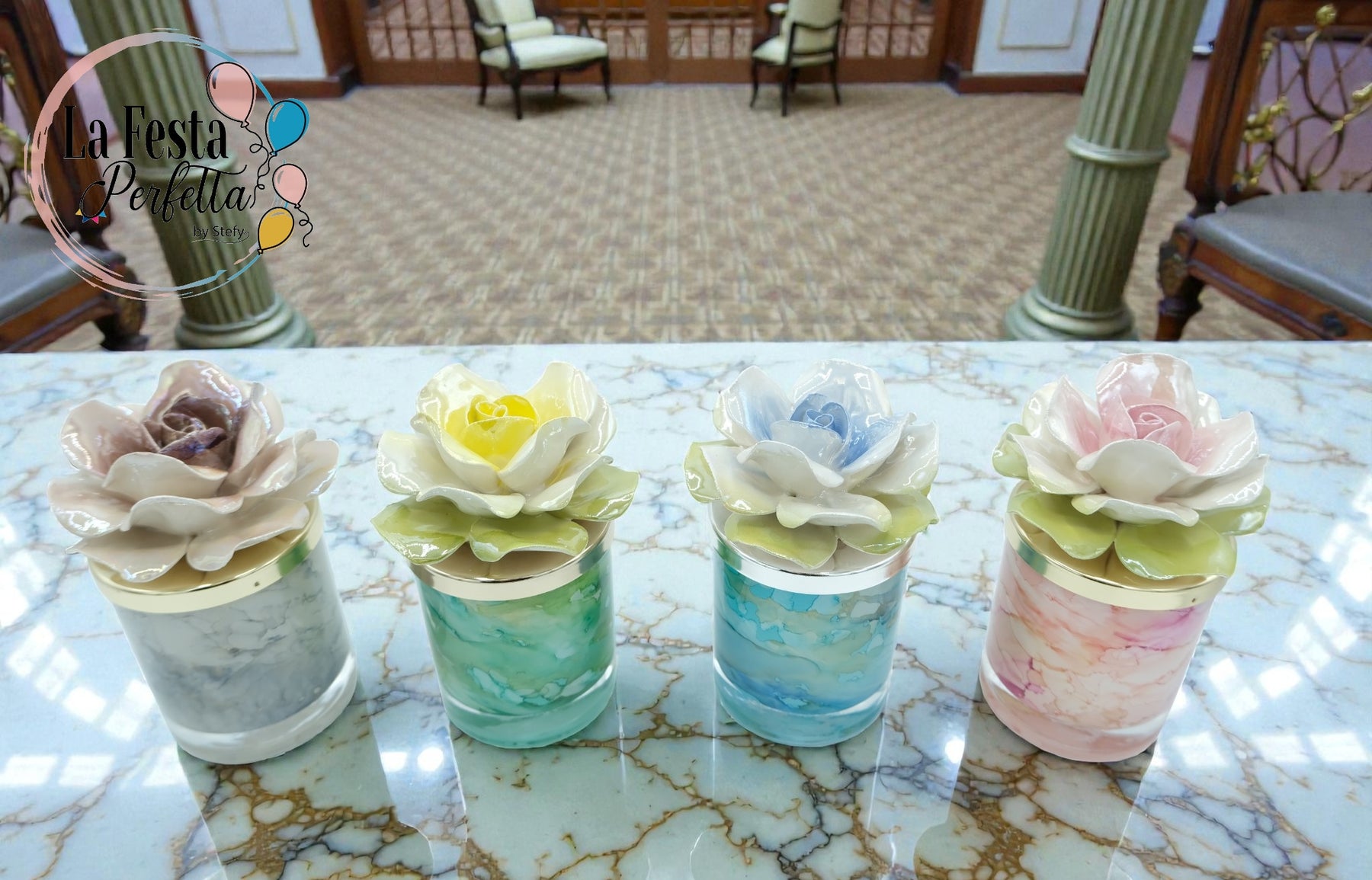 - Bomboniera Candela Con Rosa Ceramica Capodimonte